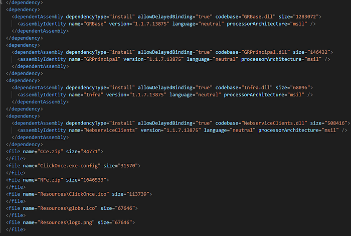 There will be different pieces of information located throughout the manifest that look very similar to .NET application manifests. This will contain all of the files and dependencies the deployment will need to execute properly.