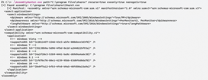Using AssemblyHunter, we can quickly identify assemblies across a host’s filesystem and look for values that will be useful to us.